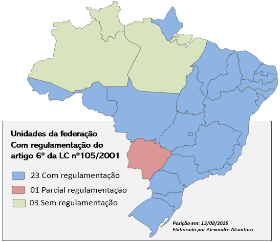 Confira no mapa a seguir o status de regulamentação do acesso às informações bancárias pelas administrações tributárias: