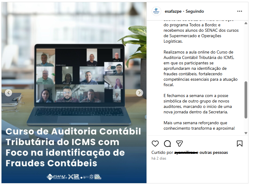 Foram dois dias intensos de imersão online, onde o foco será conectar a teoria contábil às melhores prática da fiscalização do ICMS, mas também destacando aspectos relacionados às presunções de omissão de receita do IBS, previstas na Lei Complementar nº 214/2025.