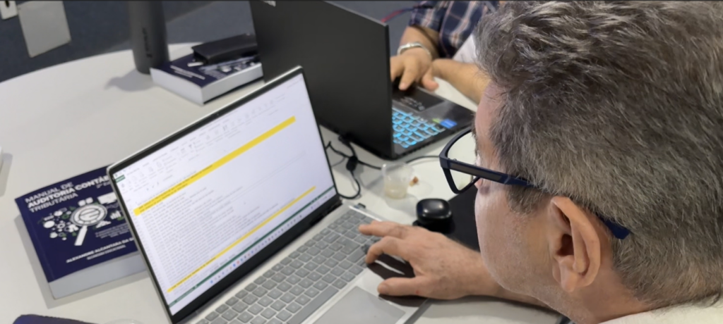 O curso foi estruturado em dois níveis, com uma carga horária total de setenta e duas horas. No módulo básico, os participantes trabalharam fundamentos normativos e operacionais relacionados à Escrituração Contábil Digital, da técnicas mais avançadas de auditoria contábil tributária, conheceram as principais fraudes contábeis com foco na sua identificação através da integração entre informações contábeis, fiscais e bancárias. No módulo avançado, o foco foi a prática, onde os participantes vivenciaram uma imersão em uma oficina prática de auditoria contábil tributária. A oficina envolveu aplicação direta dos conhecimentos em situações reais e estudos de caso, com procedimentos de auditoria contábil que envolveram análise de demonstrações, rastreamento de inconsistências, identificação de saldos críticos e interpretação de indícios relevantes para a fiscalização.